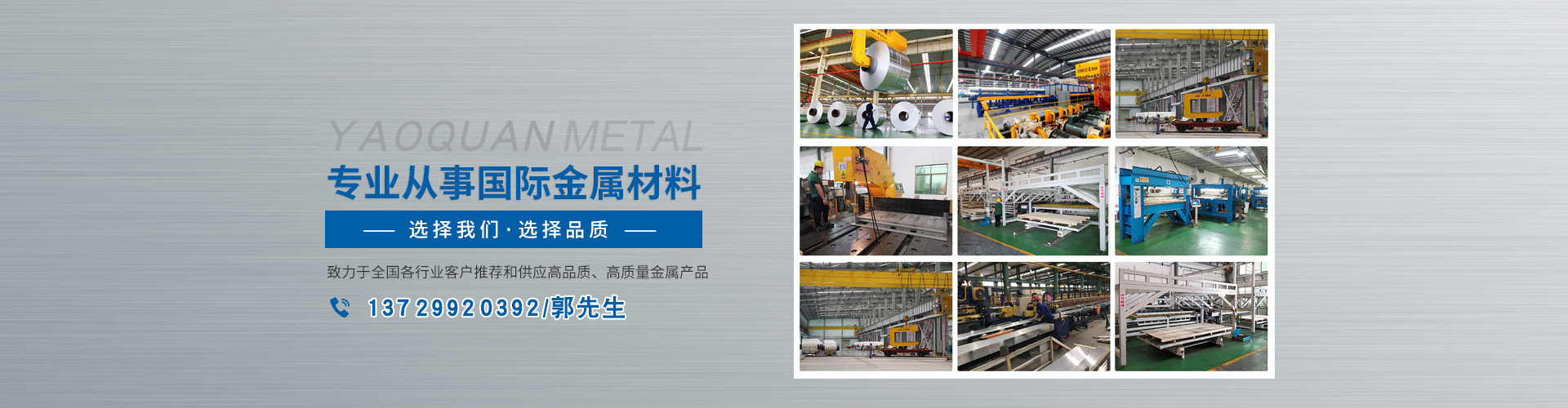 公司多年來秉承"質量第一、信用至上、服務領先、合作發展”的經營理念,堅持"誠信第一"的原則為廣大客戶提供優質的服務。以優質的材料、優惠的價格、優良的信譽、優異的服務贏得了許多客戶充分信賴和廣泛贊譽。展望未來,東莞市耀全金屬有限公司將繼續發揮自己原有優勢,積極開拓新的經濟增長點,與各界朋友攜手共創美好將來。